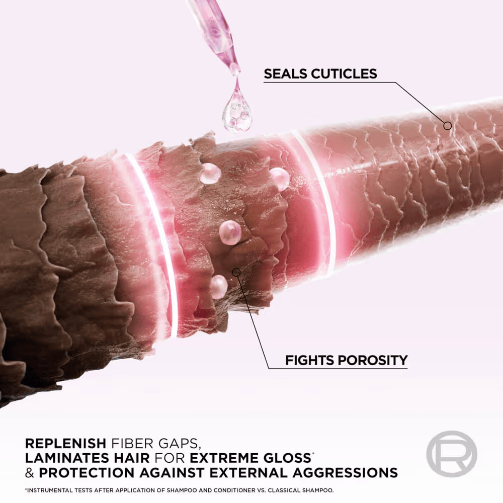 • تركيبة مبتكرة تحتوي على 3% حمض الجليكوليك لترميم الألياف وتعزيز اللمعان.
